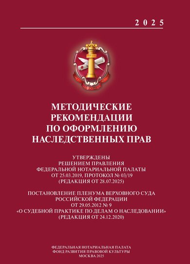 МЕТОДИЧЕСКИЕ РЕКОМЕНДАЦИИ ПО ОФОРМЛЕНИЮ НАСЛЕДСТВЕННЫХ ПРАВ. Утверждены решением Правления Федеральной нотариальной палаты от 25.03.2019, протокол № 03/19 (редакция от 28.07.2025)